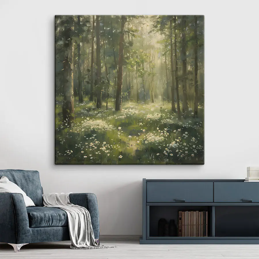 Wandbilder Wald mit Bäumen und Blumen