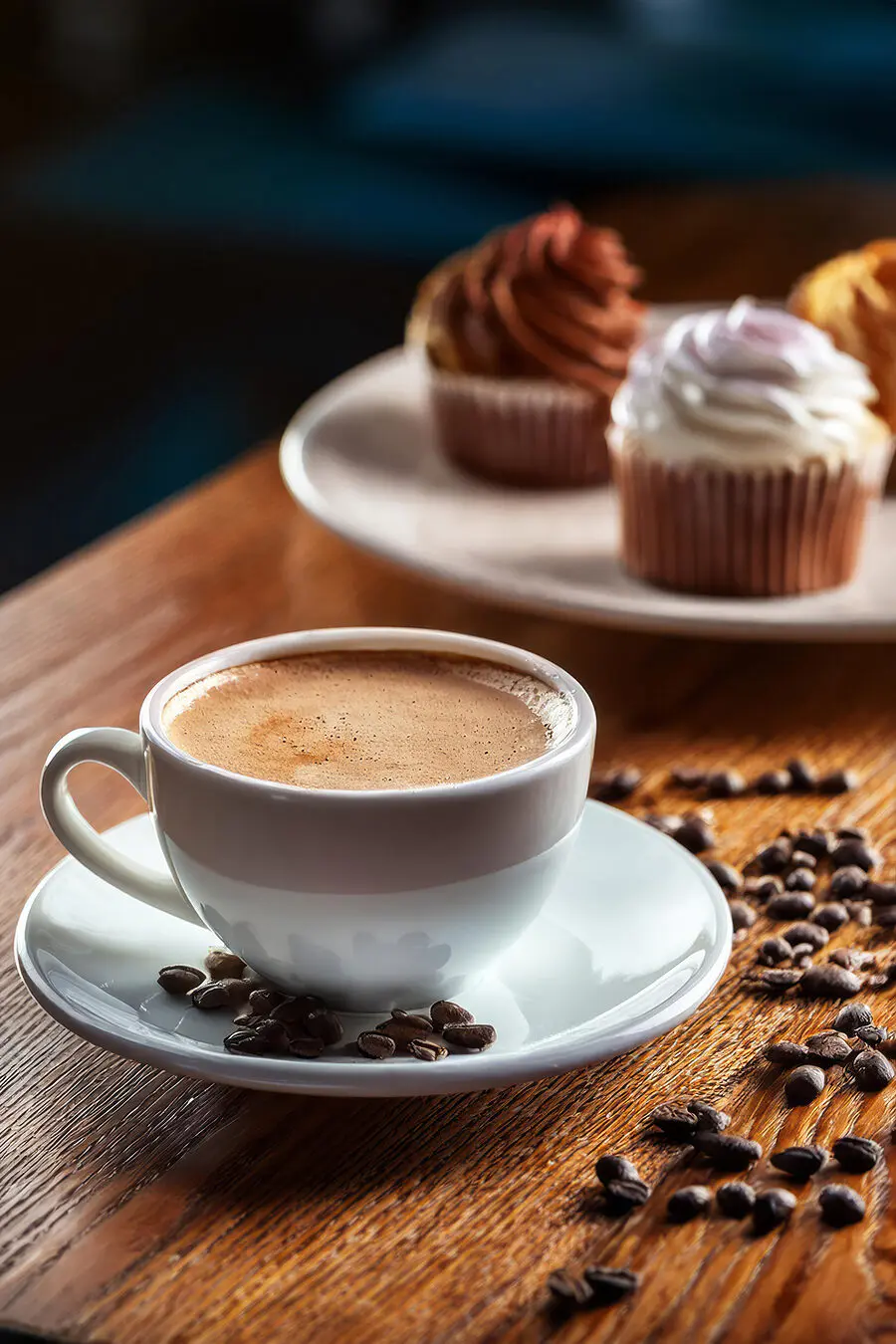 Wandbilder Tasse Kaffee und Muffins auf einem Tisch