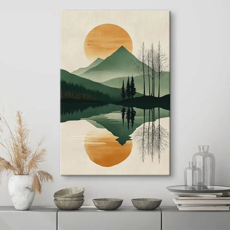 Wandbilder Landschaft mit Bergen, Bäumen und einem See