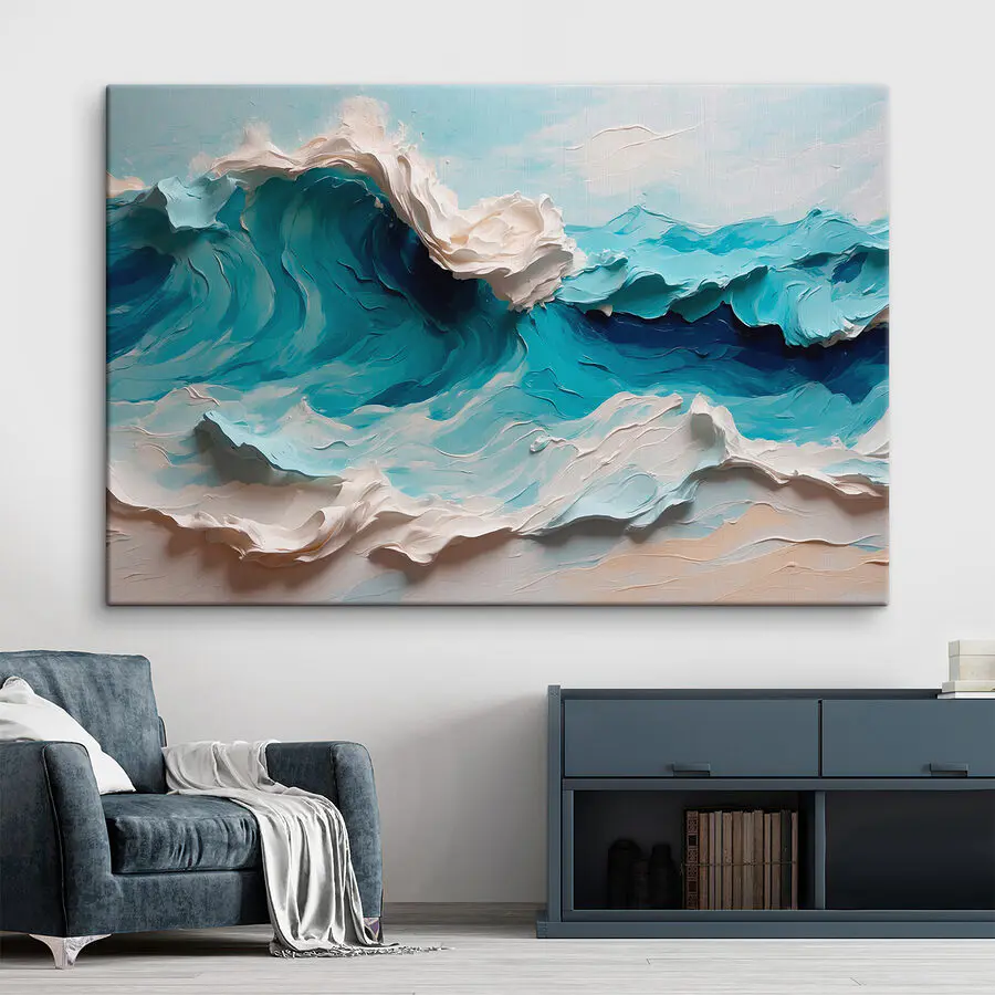 Ever wanted a piece of the ocean that doesn’t splash your plans? This canvas print captures a wave in mid-dance, bringing a bit of the beach into your space. The colors are so vivid, you might almost hear the whispers of the sea. Imagine it—those blue swirls and foamy crests livening up your wall, like a window to tranquility. Perfect for anyone who loves the ocean but hates sand in their shoes. Hang it up, sit back, and let your imagination drift along with the tides.