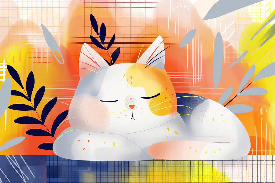 Wandbilder Schlafende Katze mit Blättern auf dem Kopf