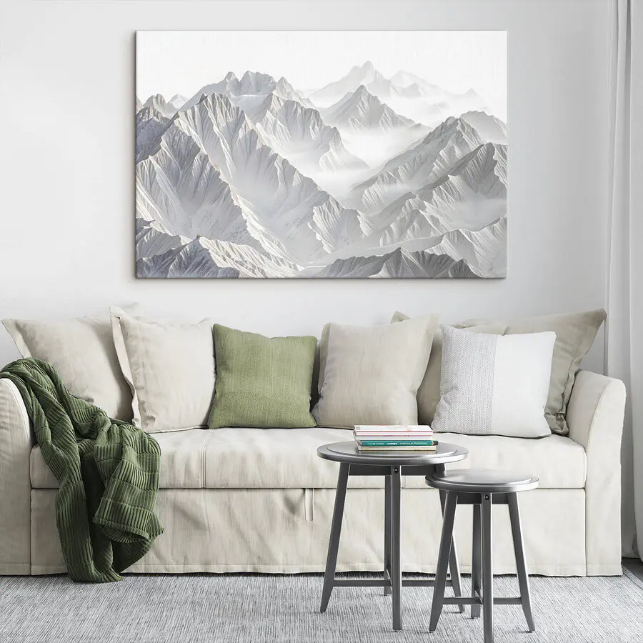 Wer braucht schon Urlaub, wenn er "Snowy Mountain Range with Clouds" an der Wand hängen hat? Dieses Bild ist wie ein Hauch von frischer Bergluft und bringt einen Hauch von Natur direkt in Ihr Wohnzimmer. Die in sanfte Wolken gehüllten Gipfel haben eine fast magische Art, den Stress des Tages zu vertreiben. Es ist minimalistisch, spricht aber Bände - perfekt für jemanden, der eine ruhige, aber fesselnde Einrichtung liebt. Stellen Sie sich vor, Sie schlürfen Ihren Morgenkaffee und verlieren sich in diesen ruhigen Hängen. Traumhaft, oder?