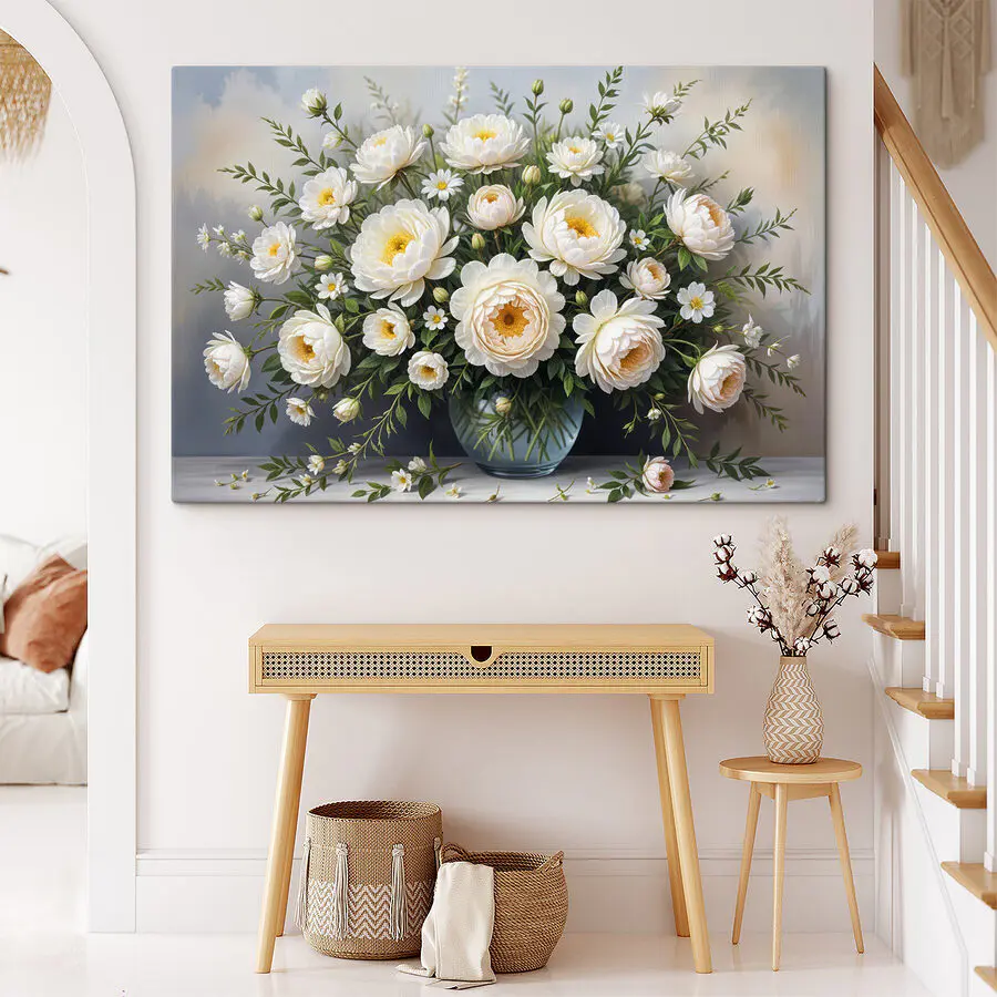 30.01 €18.00 €Wandbilder Ein Gemälde mit weißen Blumen in Vasen