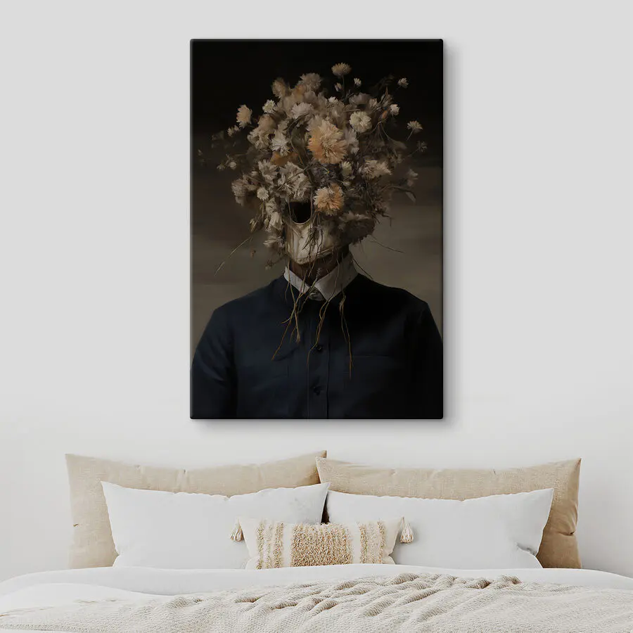 Treten Sie ein in eine Welt, in der Blumen im wahrsten Sinne des Wortes die Hauptrolle spielen! Dieser auffällige Leinwanddruck zeigt eine Figur, die mit einer beeindruckenden Blütenkrone geschmückt ist und alle möglichen Gedanken und Gefühle hervorruft. Stellen Sie sich vor, es hängt in einem Flur oder in einer gemütlichen Ecke, in der die Kreativität fließt. Stellen Sie sich vor, wie Ihre Freunde innehalten, die Augen aufreißen und sich fragen: "Was ist das für eine Geschichte?" Es ist Kunst, die zu Gesprächen anregt - was bedeutet sie, oder warum dieses schlichte Outfit mit so einem wilden Blumenmotiv? Mit seinen warmen und erdigen Tönen ist es die perfekte Mischung aus dem Charme der Natur und einem Hauch von Unerwartetem. Erhellen Sie Räume, die ein wenig Skurrilität brauchen; dieses Stück wird Sie sicher zum Lächeln bringen!