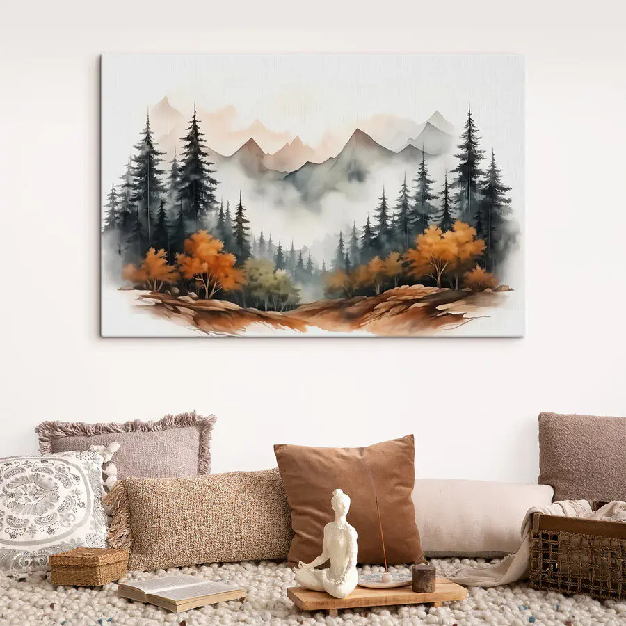 25.01 €15.01 €Wandbilder Aquarellmalerei eines Waldes und von Bergen