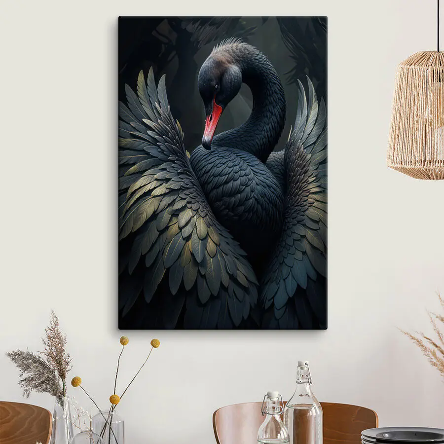Wandbilder Schwarzer Schwan mit rotem Schnabel