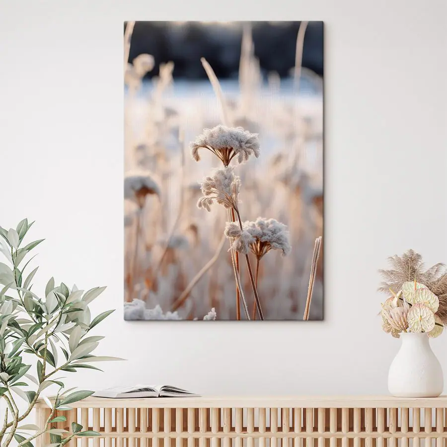 Bringen Sie einen Hauch von frostiger Magie in Ihr Zuhause mit diesem atemberaubenden Leinwanddruck "Frostgeküsste Flora im Morgenlicht". Es ist wie das Einfangen eines ruhigen Moments in der Natur, wo zarte Blumen eine frostige Decke tragen und sanft in der frühen Sonne glitzern. Dieses Werk hängt nicht nur an der Wand, sondern bringt Wärme und Ruhe in Ihren Raum. Perfekt für kühle Morgen, an denen eine gemütliche Atmosphäre ein Muss ist. Es zieht Sie in sich hinein und gibt Ihnen das Gefühl, Sie könnten direkt in diese heitere Landschaft eintreten. Ein toller Gesprächsanlass oder einfach nur eine friedliche Erinnerung daran, dass Schönheit selbst an den kältesten Tagen zu finden ist. Ganz gleich, ob es ein Wohnzimmer erhellt oder einem Schlafzimmer Charme verleiht, dieser Druck vermittelt einen Hauch von Natur, der jeden zum Lächeln bringt.