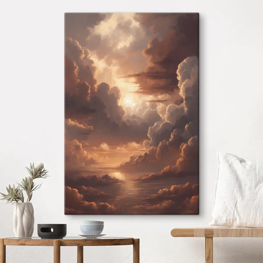 25.01 €15.01 €Wandbilder Ein Gemälde von einem Strand mit Wellen und einem Sonnenuntergang