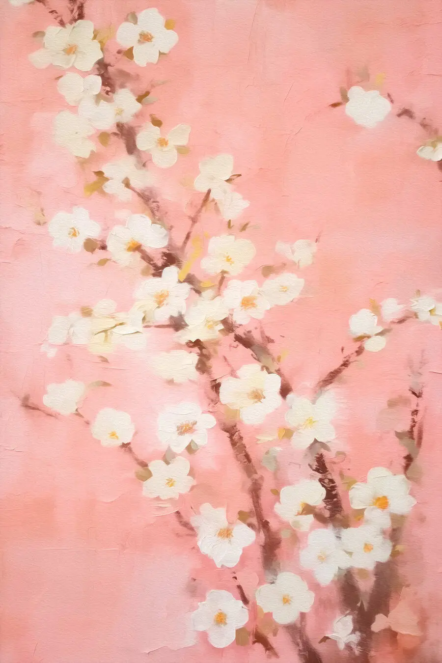 Wandbilder Gemälde eines Zweigs mit weißen Blumen