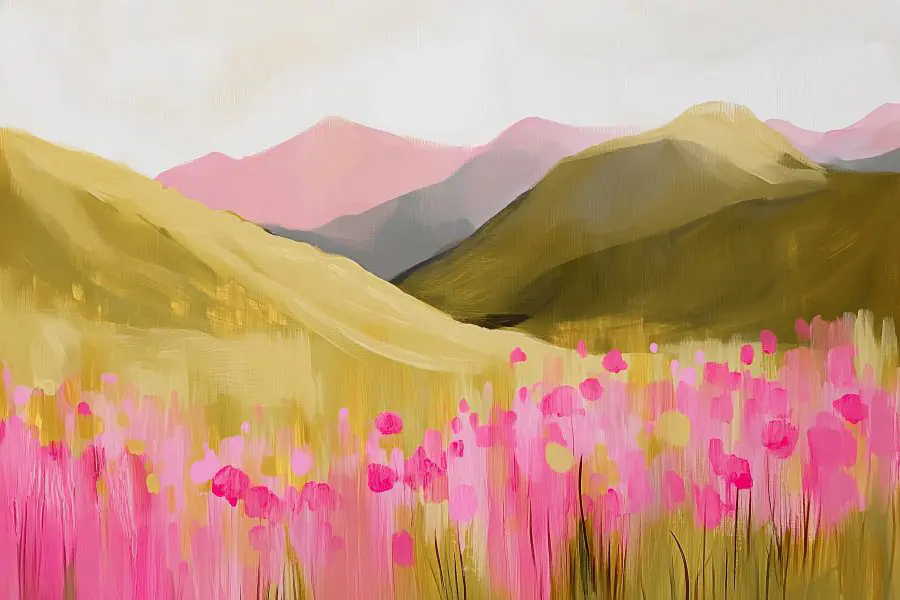 Wandbilder Gemälde eines Feldes mit rosa Blumen