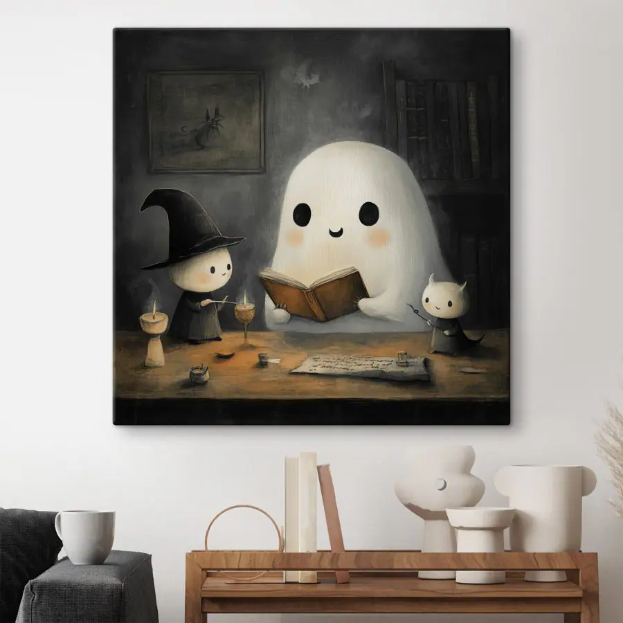Wandbilder Ein Geist liest ein Buch mit zwei kleinen Menschen