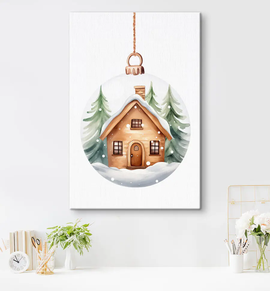 Wandbilder Glaskugel mit einem Haus und Bäumen darin