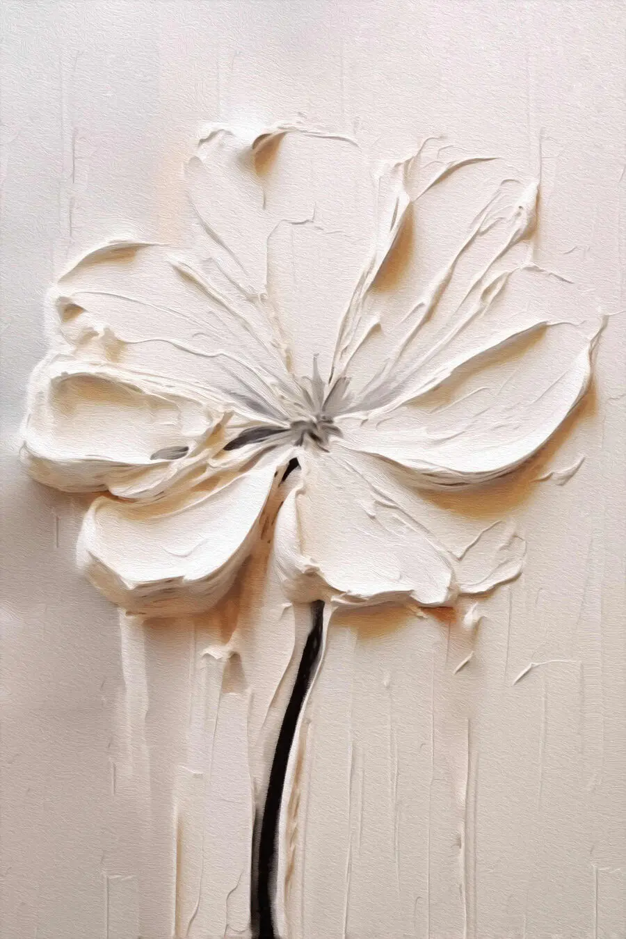 Dieser atemberaubende Leinwanddruck einer weißen Blume, die wunderschön in eine weiche, einladende Oberfläche eingearbeitet ist, verwandelt jeden Raum. Es ist, als hätte man ein Flüstern der Natur direkt an der Wand, sanft und beruhigend. Stellen Sie sich vor, Sie schlürfen einen Kaffee im Morgenlicht, die Blume fängt das Licht ein und verbreitet eine heitere Stimmung im Raum. Dieses Stück kann eine langweilige Ecke in eine gemütliche Ecke verwandeln und mit seiner Schlichtheit Freude verbreiten. Perfekt für alle, die Kunst schätzen, die sich lebendig anfühlt und dennoch mühelos elegant ist. Eine reizvolle Note für jedes Zuhause!