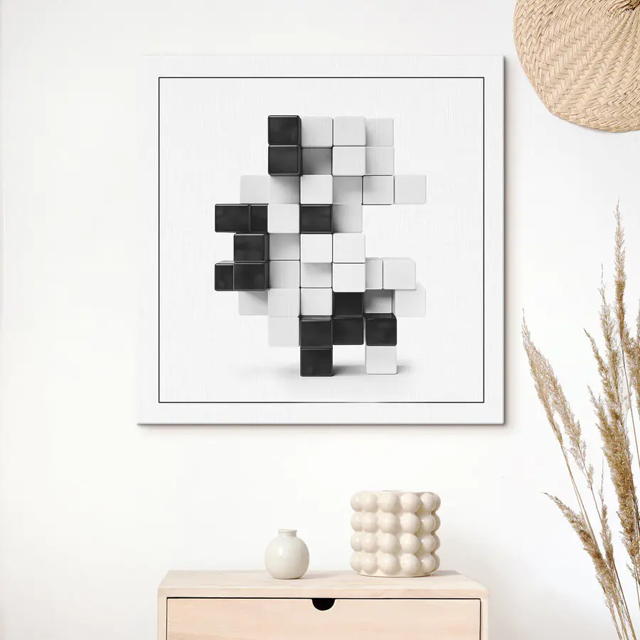 Wandbilder Schwarze und weiße Würfel übereinander gestapelt