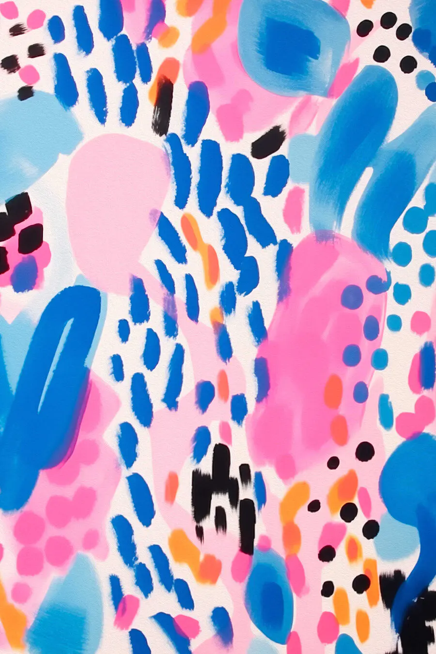 Dieser verspielte Leinwanddruck mit einem farbenfrohen Muster aus kräftigen schwarzen und blauen Flecken vor einem lebhaften Hintergrund bringt jede Wand zum Strahlen. Es ist wie eine fröhliche Tanzparty direkt in Ihrem Wohnzimmer! Stellen Sie sich vor, Sie laden Freunde zu sich ein; sie kommen herein und spüren sofort die fröhliche Stimmung. Die Mischung der Farben regt die Kreativität an, vielleicht sogar ein wenig Tagträumen über Strandausflüge oder Sommernächte. Perfekt, um einer gemütlichen Ecke oder einem geräumigen Büro einen Hauch von Persönlichkeit zu verleihen, verwandelt dieses lebhafte Stück alltägliche Räume in außergewöhnliche Räume. Es ist, als ob Sie einen Spritzer Glück in Ihr Zuhause einladen!