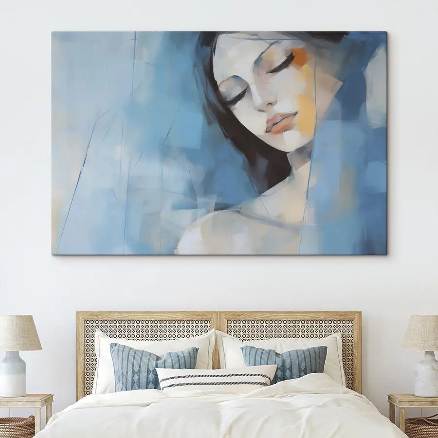 Treten Sie ein in eine Welt der Ruhe mit "Soft Serenity in Cool Hues". Dieser verträumte Leinwanddruck zeigt eine beruhigende Palette von Blautönen und sanften Pinselstrichen, die Sie in Ruhe einhüllen. Stellen Sie sich vor, es in Ihrer Lieblingsecke aufzuhängen - vielleicht an einem Fenster, wo das Sonnenlicht sanft auf seiner Oberfläche tanzt. Vielleicht kommen Freunde vorbei, nippen an ihrem Tee und sind in Gedanken versunken und träumen von friedlichen Ausflügen. Dieses Stück regt zu Gesprächen an oder lädt einfach zum Innehalten und Durchatmen ein. Perfekt, um jedem Raum einen Hauch von Eleganz zu verleihen, ist es wie eine sanfte Umarmung für Ihre Wände.