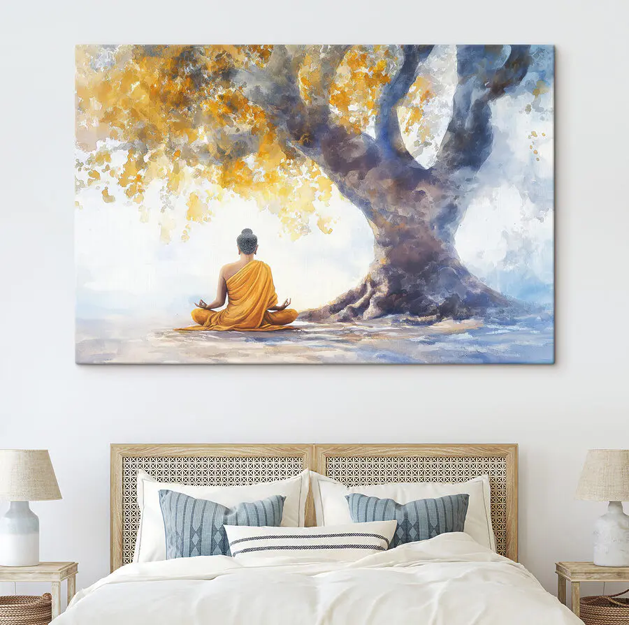 Wandbilder Gemälde einer meditierenden Person unter einem Baum