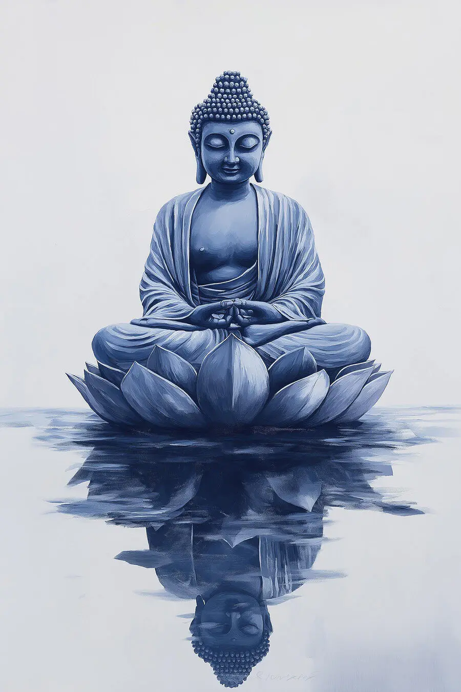 Wandbilder Statue einer Person, die auf einer Lotusblume sitzt
