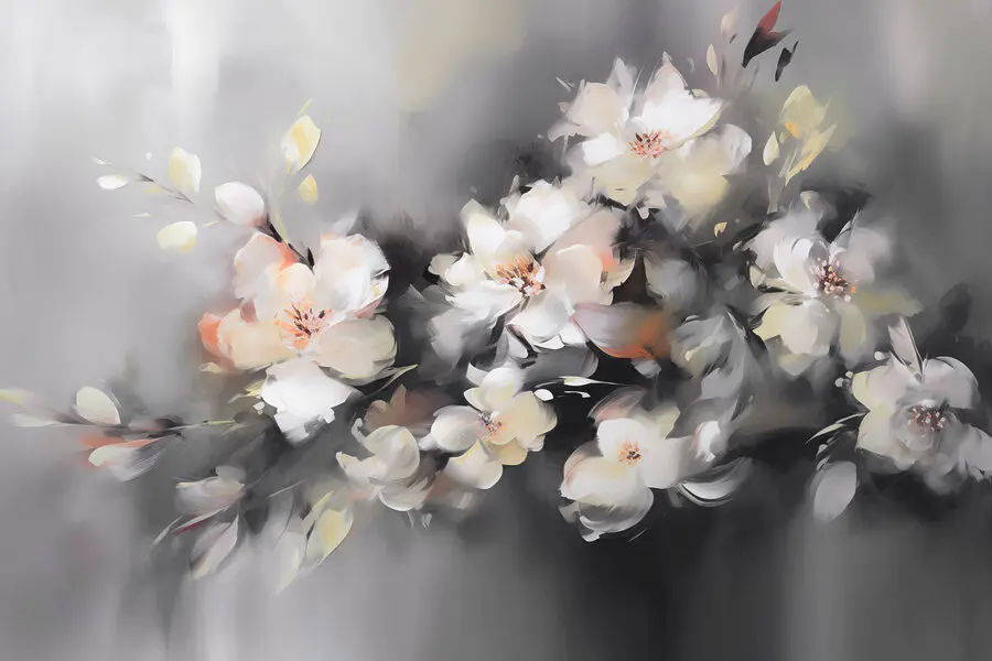 Wandbilder Gemälde mit Blumen auf grauem Hintergrund