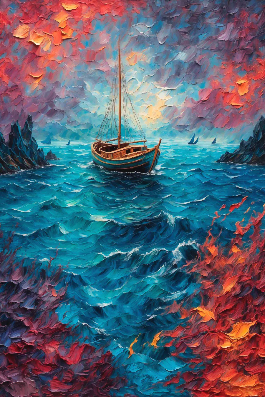 Wandbilder Gemälde eines Bootes auf dem Meer