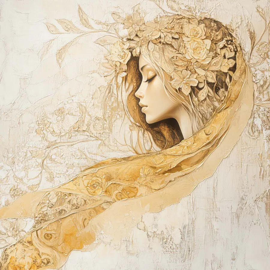 Wandbilder Gemälde einer Frau mit Blumen in ihrem Haar