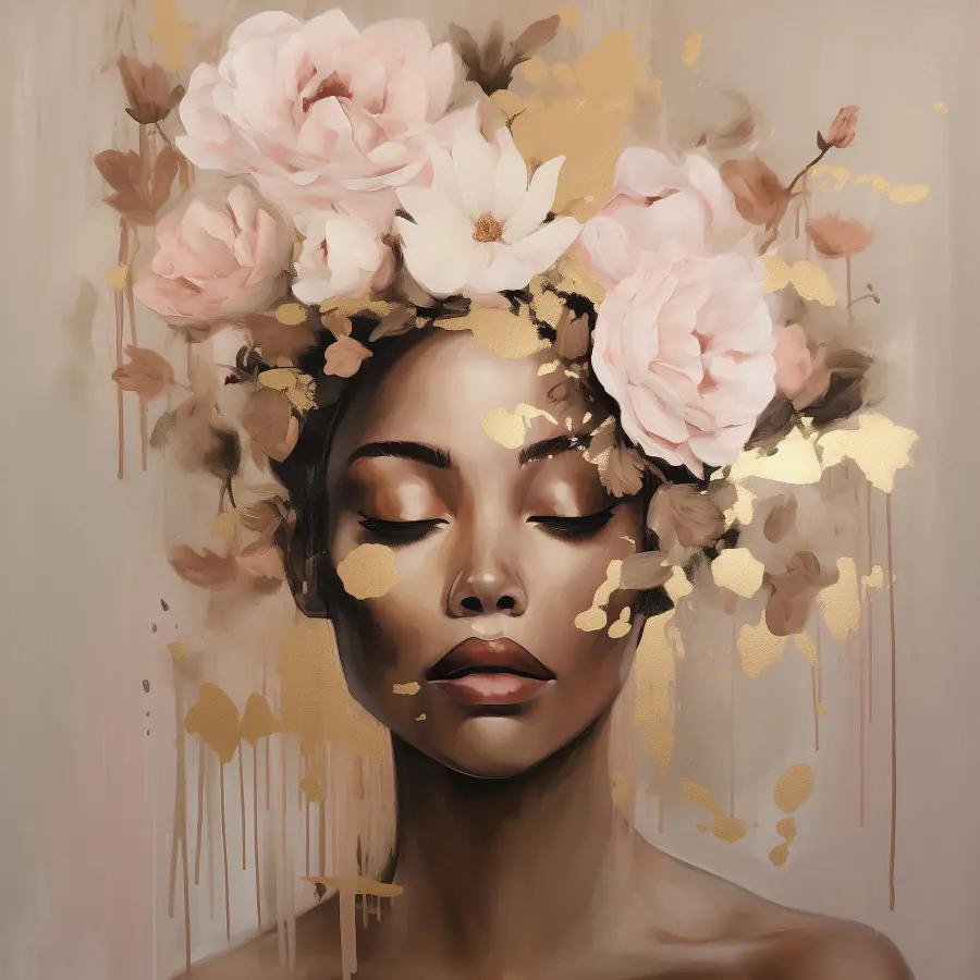 Wandbilder Gemälde einer Frau mit Blumen auf dem Kopf