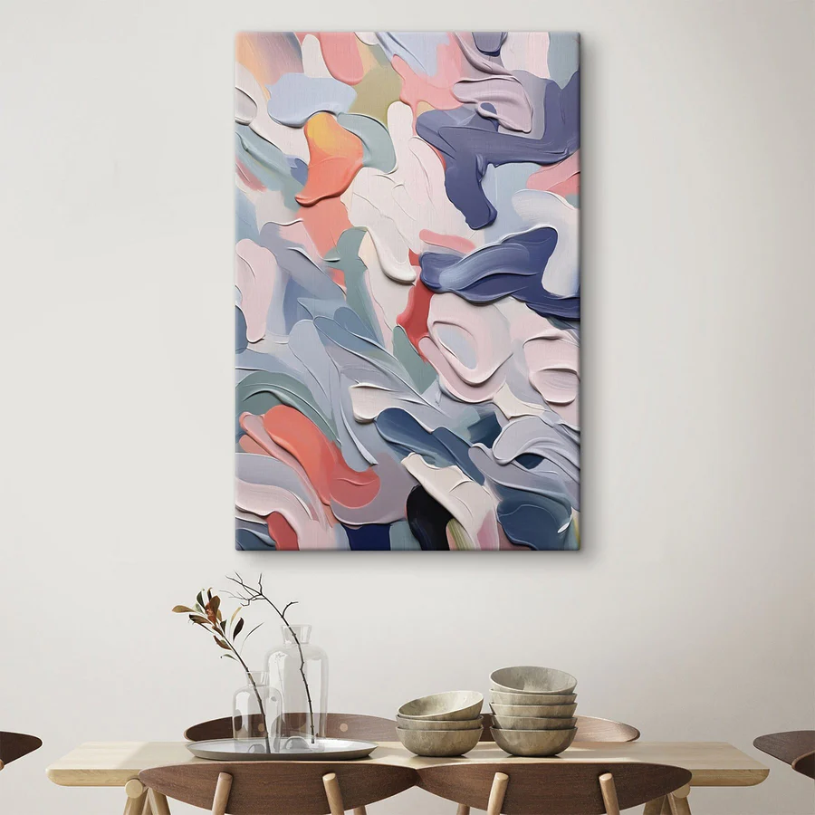Tauchen Sie ein in die beruhigende Umarmung von "Abstract Waves of Gentle Colors". Dieses Werk ist wie ein sanftes Flüstern für Ihre Wände - perfekt, um jedem Raum einen Hauch von Gelassenheit zu verleihen. Stellen Sie sich vor, Sie lehnen sich in Ihrem Lieblingssessel zurück, ein warmes Getränk in der Hand, und lassen Ihren Blick über diese beruhigenden Farben schweifen. Die Wellen der Farben fließen ineinander und erinnern an eine friedliche Küste in der Abenddämmerung. Es ist nicht nur Kunst, es ist auch ein Gesprächsanlass. Freunde können sich in den Wellen verlieren, wobei jede Kontur einen neuen Gedanken auslöst. Diese sanften Pastelltöne können selbst den trübsten Tag aufhellen und machen es zu einem Muss für jeden Raum, der ein wenig Ruhe gebrauchen könnte. Warum also nicht auch Ihre Einrichtung von diesen künstlerischen Wellen umspülen lassen? Es wird eine gemütliche Atmosphäre schaffen, die zur Entspannung einlädt. Viel Spaß beim Dekorieren!