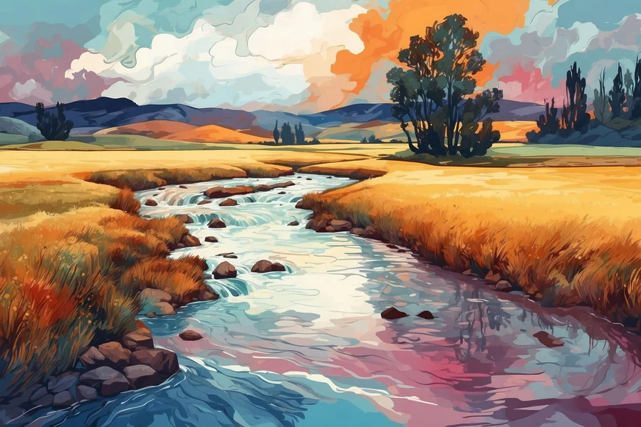 25.01 €15.01 €Wandbilder Gemälde eines Flusses, der durch ein Tal fließt