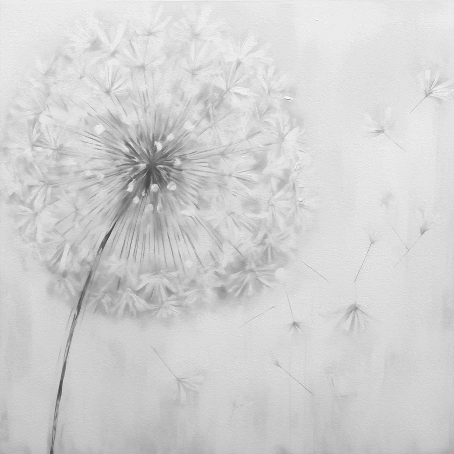 Wandbilder Löwenzahnblüte mit in der Luft fliegenden Samen
