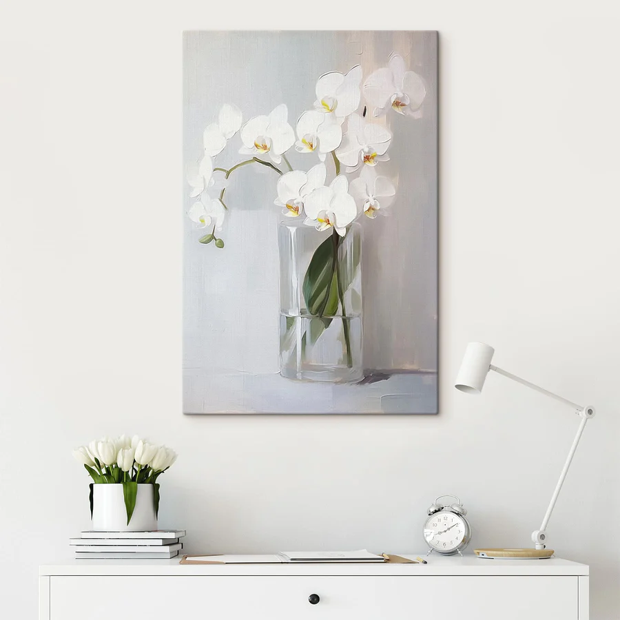 Wandbilder Gemälde einer weißen Orchidee in einer Glasvase