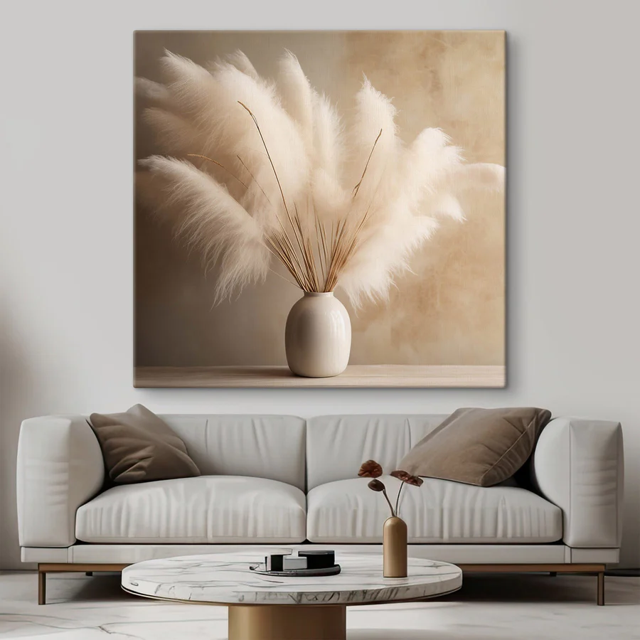 Wandbilder Weiße Vase mit flauschigen Blumen