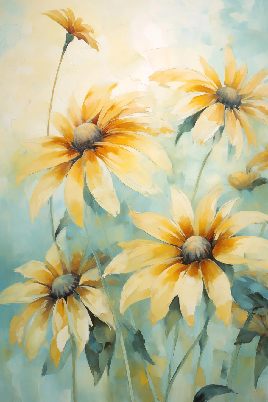 Wandbilder Gemälde mit gelben Blumen