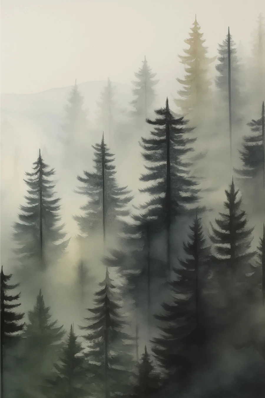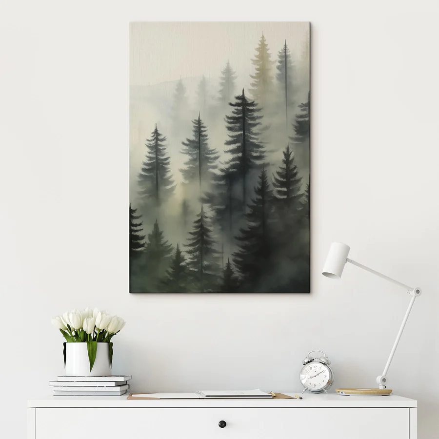 25.01 €15.01 €Wandbilder Ein Aquarell eines Waldes mit Bergen im Hintergrund