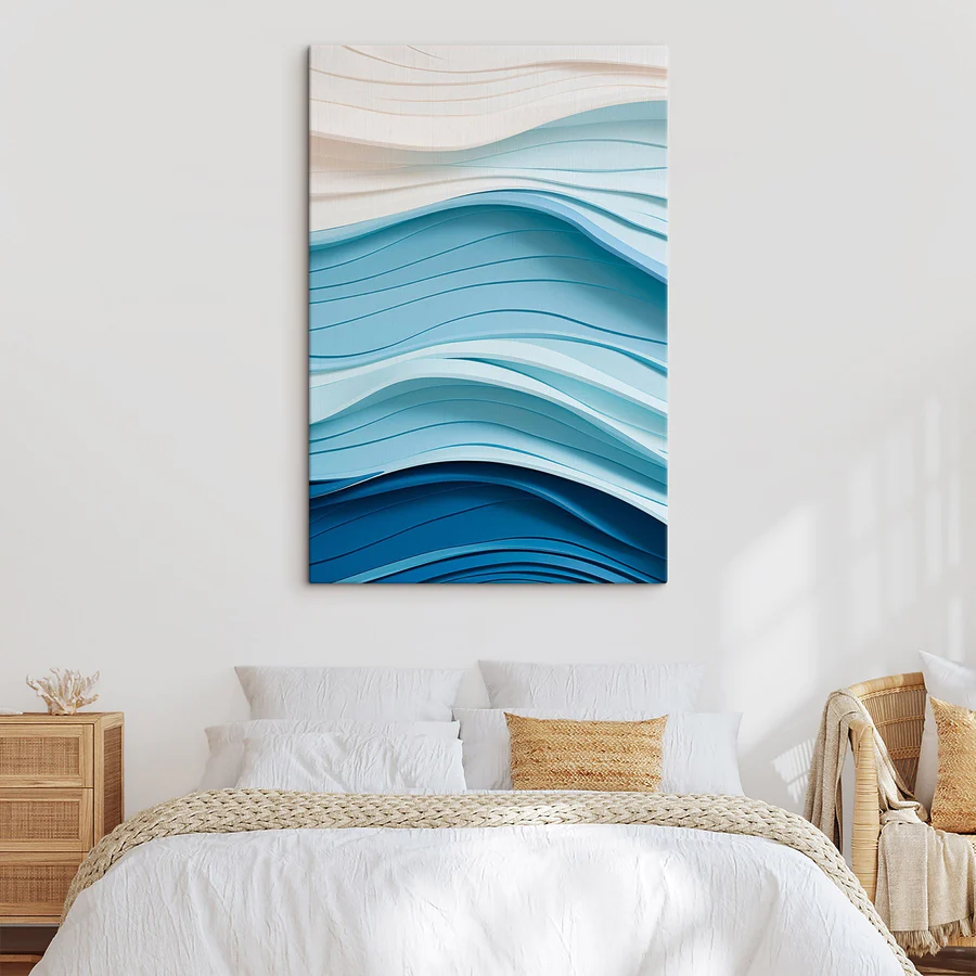 Wandbilder Blaue und weiße Wellenlinien