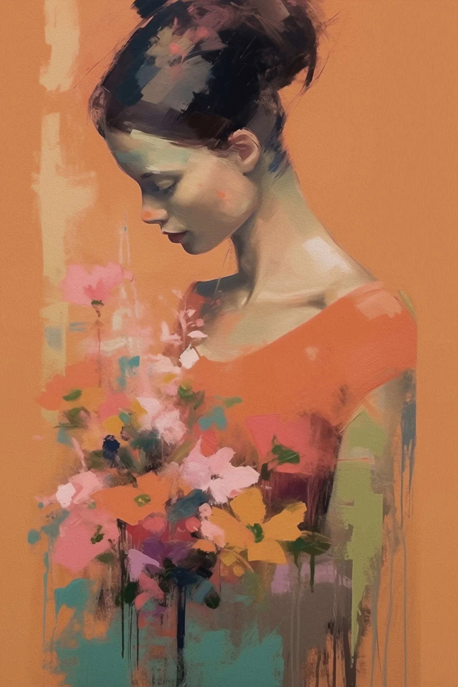 Wandbilder Frau hält Blumen