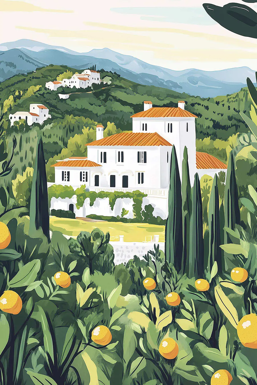 25.01 €15.01 €Wandbilder Aquarellmalerei von Gebäuden und Zitronen an einem sonnigen Tag