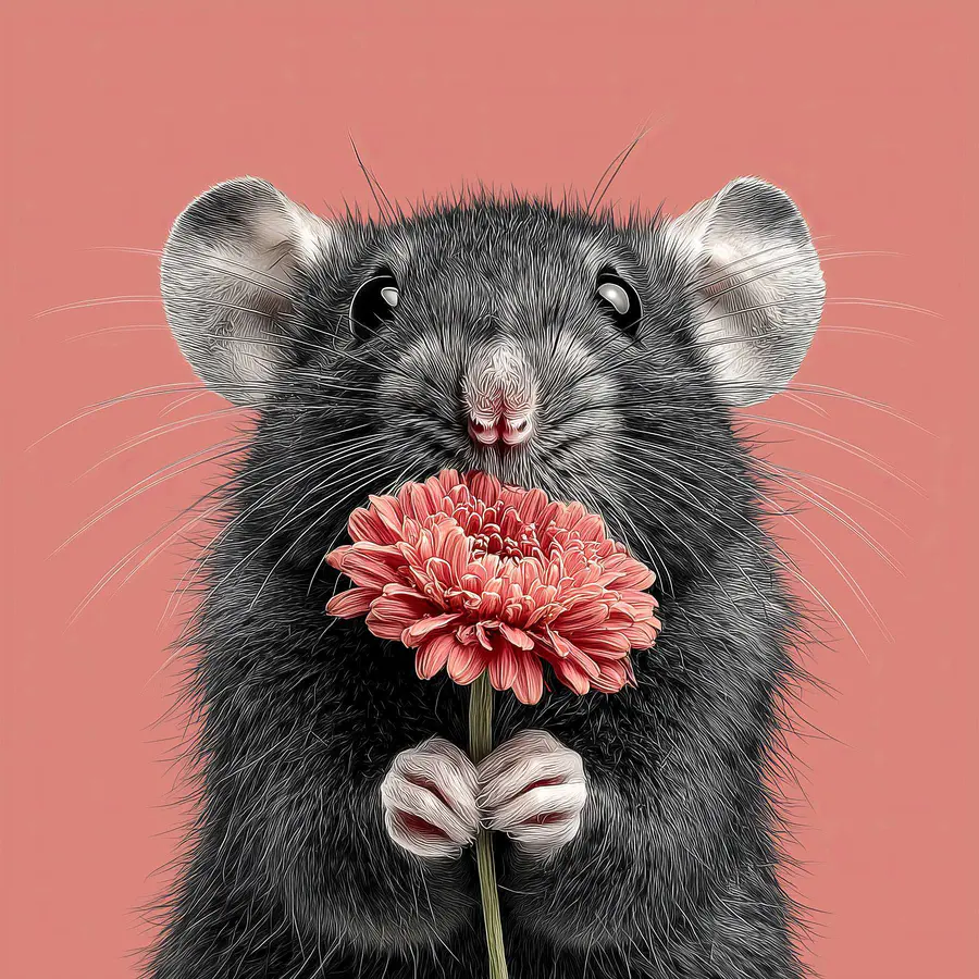 Wandbilder Maus hält eine Blume