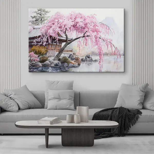 25.01 €15.01 €Wandbilder Aquarellmalerei eines Gebäudes und eines Kirschblütenbaums